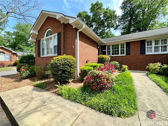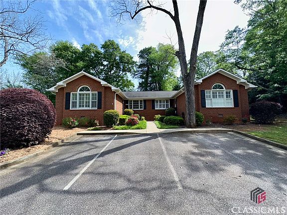 Rare opportunity literally in downtown Watkinsville. This well maintained and updated single family attached condo in a modest 6 unit community is across from Ashford Manor right in downtown yet it is smack in the middle of a serene and sylvan park-like setting. Home is one level living at its finest - 2 Bed 2 Bath with a very versatile floor plan, including bonus space and an extraordinary amount of storage space inside and out. Shiplap style ceilings and hardwood floors throughout (carpet in owner’s suite). Large living room with built ins flank a cozy gas fireplace and just across the hall is a dining room with view through to the eat-in kitchen with bar seating. Owners are foodies and worked creatively to make the kitchen very user friendly. Two, count ‘em, two pantries were created after moving the laundry to the large tiled bonus room off the back of the home. The front bedroom is bright and spacious with a vaulted ceiling and two closets. Owners used this room as a bedroom at one point and then an office/guest room, and this is just one example of this floor plan being versatile (would make a great second living room/den). The back bedroom is an en suite and includes a full bath and walk-in closet with a view from the bedroom to the courtyard style back yard with two sheds, a patio, and an open garden area. An interior addition adds more square footage and versatility to this already spacious home and includes the laundry area as well as a bank of built-ins with a desk. Updates/Renovations include but not limited to: Kitchen: Moved Laundry; Added double door pantry; granite counters; opened up kitchen to dining room; rewired for can lights; added a stove; updated lighting (wired with a switch for can lights and exterior vent hood conversion would be a snap). Closets: Wood shelving added throughout. New HVAC and thermostat in 2021 (HVAC still warranted for approximately 8 years). New water heater in 2019. New lighting in Kitchen and Dining Room. Major updates in both bathrooms, including tile, plumbing fixtures, lighting, counters, sinks, power flush toilet in hall bath, and more. New paint throughout. Can lights in the kitchen and hall. High-end Peterson “Real Fire” gas logs. New carpet in back bedroom. Owners removed interior window shutters from the home but kept the en suite shutters installed (remaining shutters still on site as is the door from the back hall to the flex space by back door). Outlets are everywhere! Spectrum Cable available. Condo fees cover many expenses typically part of homeownership, so monthly budget is potentially a game changer for the new owner. Ample reserved and overflow/guest parking. All this and more walking distance (with sidewalks!) to everything downtown has to offer, including bars, restaurants, antique and clothing shops, cafes, and more with Wire Park just on the other end of downtown and that includes more of the same (and more, including a local award-winning brewery. You just rarely find this downtown yet peaceful lifestyle in Oconee County. Quick access to schools if needed and Athens is just a hop skip and jump away. Easy to show and ready to go!