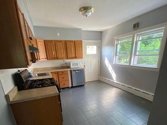 Spacious and private 4 bed/2 full bath apartment on dead end street in convenient Warrendale location. Located on the 2nd and 3rd floors of a two family home, this apartment has 2 large bedrooms and a full bath on each level, as well as a generously-sized eat-in kitchen and laundry in unit. Features hardwood floors throughout, lots of windows for plenty of light, 4 parking spaces, and a common patio in the back perfect for cookouts or just enjoying the nice weather. Near Bentley University, bus lines, shopping, restaurants. Only about one mile to commuter rail and Moody St. Landlord does lawn care, tenants do snow removal. If undergrads, landlord will require first/last/$1000 security. No smoking. No pets. Tenant pays 1 month broker fee.