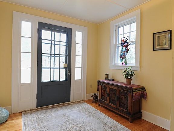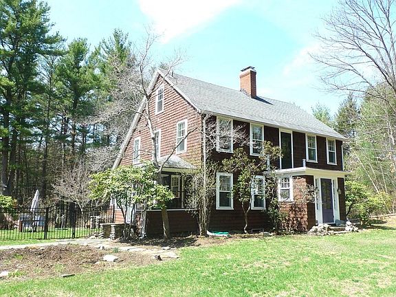 Classic New England Colonial/Saltbox completely charming and welcoming, set back from the street in a peaceful and private country setting. This home has many wonderful updates. It features a masterpiece kitchen with marble countertops and 2 sinks, 2 dishwashers. The large living room with great flow offers fireplace with new wood stove insert, hardwood floor & built-in book cases. Beautiful dining room. This ideal floor plan can accommodate large family gatherings with ease or small intimate gathering beautifully. 4 bedrooms + office upstairs offer rooms for many uses, large full bath tiled shower with claw foot tub and laundry room complete the second floor. A huge rear fenced yard overlooks the peaceful 2.2 acres lot, charmed with nature for play, garden & fruit trees (blueberries & blackberries). There is also a 2-storey garage/barn building. All these is only a quick drive to the center of Amherst and the 5 Colleges. Lovingly cared for & maintained. Come & explore!