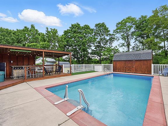Step outside to your private retreat — the showstopper of this home. Spend hot summer days by the sparkling in-ground pool, relax under the cabana, and entertain guests on the expansive tiered decks, all overlooking the lush, oversized lot. A tranquil Koi pond completes this perfect outdoor oasis. This home isn't just a place to live — it's a lifestyle. Whether you're hosting gatherings or enjoying peaceful moments by the water, this home has it all! Inside, you'll find an inviting kitchen with solid cherry cabinets, granite countertops, tile backsplash, and stainless steel appliances. The spacious primary suite offers an ensuite bath and a massive walk-in closet, while the second-floor laundry adds everyday convenience. All appliances including washer & dryer, pool equipment, grill and lawn furniture convey!