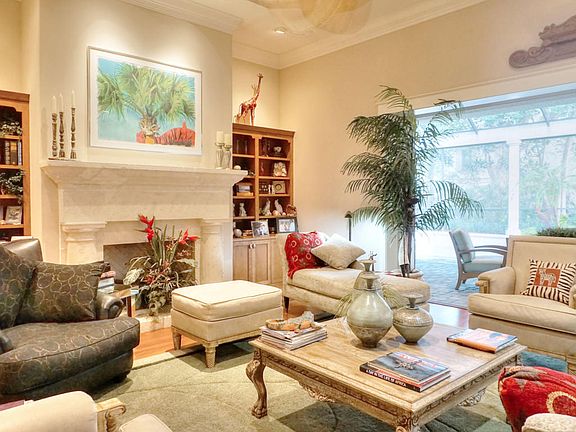 This beautiful home is an Arthur Rutenburg design, built in 2001 as developer's home. Home includes upscale upgrades, including ceiling speakers throughout with individual controls (also on back deck). There are also custom plantation shutters throughout and custom built-in cabinets and shelves. The open, gourmet kitchen features a new GE Extra Quiet dishwasher, GE Monogram ice maker, GE microwave, a six-burner GE Monogram gas cook top, double GE Monogram convection ovens, a GE Monogram refrigerator with matching custom panels, and a built-in Miele coffee maker! The living room opens wide to the screened and landscaped outdoor living space showcasing a summer kitchen and a pool with a fountain. The master suite has a spa-like bath and an office is adjacent.