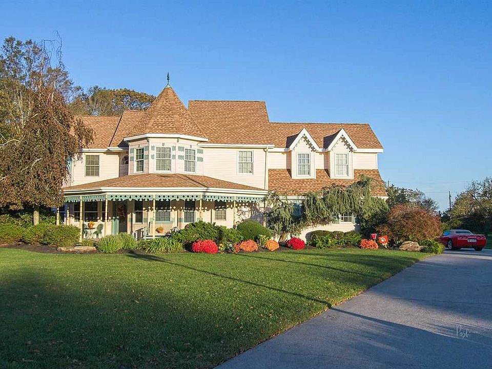 Beautiful Country Victorian with everything you could possible need. Generous rocking chair front porch, two story foyer w/marble floors, Formal living room w/crown molding and recessed lights, formal dining room with tile floors, wired media room w/hardwood and surround sound speakers, 2 story family room w/gas fireplace and hardwood floors, large office with hardwood floors and separate entrance. Second floor has a large master suite with vaulted ceilings, master bath with double sink, shower and whirlpool tub. 3 bedrooms and 1 full bath. Rear yard has deck, gazebo, Heated pool, pool house, exterior powder room and shed. In ground sprinkler Sprinkler system, alarm system and an over sized 2 car garage. A home that a builder built for himself that has been lovingly maintained.