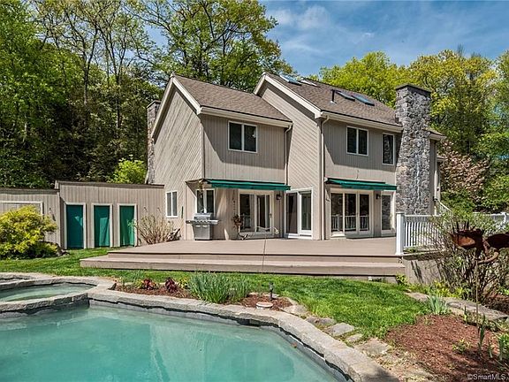 Rare opportunity awaits! Enjoy 6 acres of tranquility with a brook, waterfalls, pool and professionally landscaped grounds. 650' of road frontage on winding Hart Ridge Drive and the actual Punch Brook babbling at the rear boundary, offering privacy without seclusion. Dramatic custom and updated home invites entertaining and quality living. Spaciousness embraces you as you enter with an open view to a vaulted living room with floor to ceiling stone fireplace as well as the vaulted family room featuring glowing wide cherry flooring and a stone fireplace. It is open to the casual glass-walled eating area overlooking the rear yard & pool area & the upscale remodeled maple kitchen with newer appliances. Custom mahogany railings and mantle add to the one-of-a kind list of features. The master suite with sitting area has a french door to the deck, remodeled bath with granite and oversized shower, and double walk-in closets. It is separated by the loft/bridge overlooking the family room which leads to two additional bedrooms with a remodeled bath. Stairs lead to a third floor cozy bedroom(currently used as an office/craft room) with it's own bathroom, skylight - perfect for a guest or retreat. The 1100 sq. ft deck easily handles all your friends, family, and a screened gazebo and opens to the yard, nature vistas and picturesque pool. There is a retractable awning and 3 private dressing cabanas with shower. The 13X15 storage barn has a cement floor, electricity. Take a walk to the brook! A special home and property like this is rarely available!