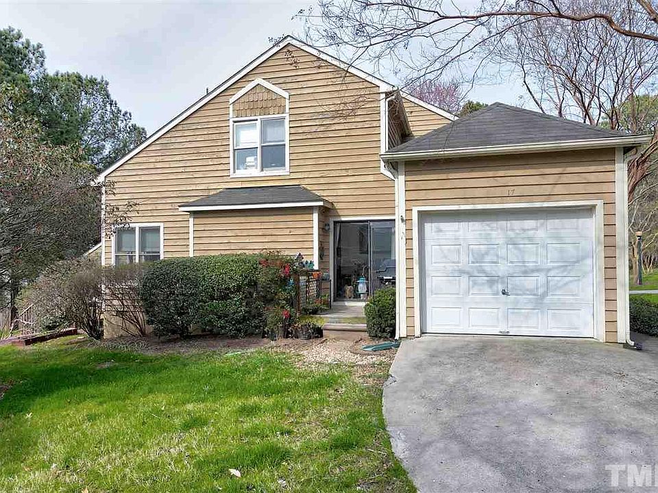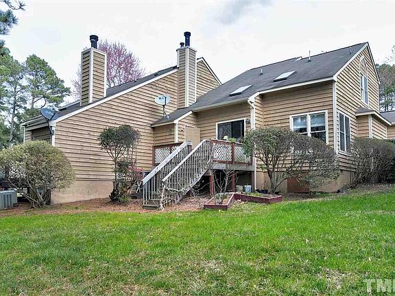 Private end unit in the wonderful Woodcroft Community. This 3 bed 2 bath home features vaulted ceilings with beautiful skylight windows that provide natural light. Stone tile flooring throughout first floor. Large deck with storage unit. Great location near Duke, UNC, RTP and major highways. Come make this home!