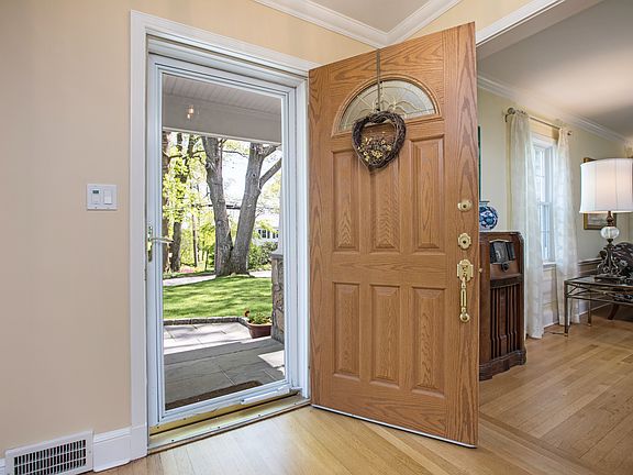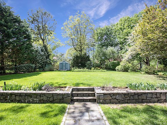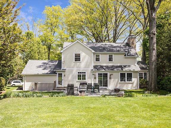 Gorgeous well-proportioned property with a beautiful balance of sunlight and shade on a private street in Quaker Ridge surrounded by lush grounds that offer privacy, serenity and room for a pool. This classic Ackerman-built Colonial in mint, move-in condition has been completely modernized with a designer eat-in kitchen and family room area that is perfect for entertaining or everyday family time, and opens out to the sunbathed slate patio for outdoor enjoyment. Signature Ackerman details can be seen throughout the living room with fireplace and formal dining room. There are three bright and spacious bedrooms on the second floor. A wood-paneled finished basement with a retro bar and barstools and a decorative fireplace offers additional leisure space for family and friends. The entire home layout is efficient yet spacious and the property proportions are ideal for expansion.