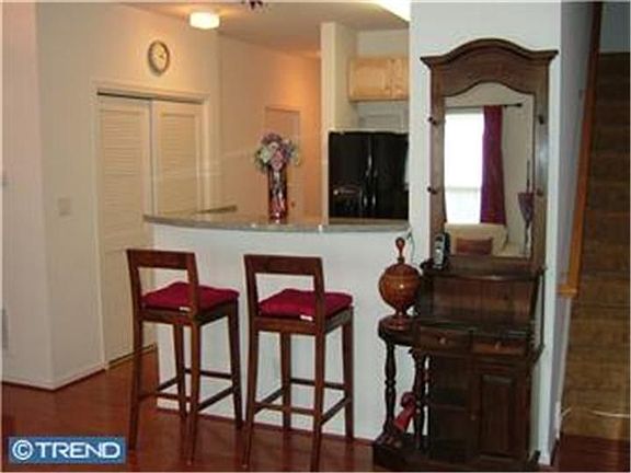 Very spacious beautiful 2 bedroom, 2 full bath townhome featuring an open floor plan, a warm great room and gorgeous hardwood floors throughout the first floor and a full bath. The living room has high ceilings, recessed lighting and large windows overlooking the grounds. The kitchen is adjacent to the living room with laminate countertops, seating and large cabinets for all your storage needs. The garage entrance is conveniently located off the kitchen which makes it very convenient in inclement weather. The second floor is carpeted and has 2 bedrooms with a master suite containing a very large closet for all of your wardrobe and storage needs. This unit offers a lot of privacy and the grounds are very well maintained. Appliances are included . This development is within close proximity to the Delaware River; walking paths, and the River Line train as well. This will not last; so take a look at it soon!!!