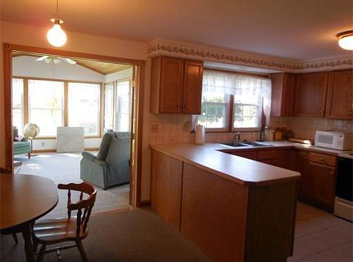 NORTHAMPTON You won't get the winter blues in this sunny and spacious Cape . Move in ready with welcoming and open kitchen that spills into a light filled four season room. Enjoy the feeling of being out of doors but with the warmth of heat while you watch the leaves turn and the snow fall. First floor has large living room, open kitchen with dining area, sun room, 3/4 bath with convenient stack washer and dryer, two bedrooms , one of which could be used as a formal dining room, playroom or office space. Up are two more generous and freshly painted bedrooms, full bath, and storage. Handsome hardwood flooring is found throughout most of the home. The full cellar has excellent ceiling height should you need to create more living space. Oversize attached 2 car garage has sturdy wheelchair ramp which could be removed prior to closing if it is not needed. Newer roof and economical gas heat. All this set on a large open lot in a great location close to schools, shopping, and downtown center. $359,000