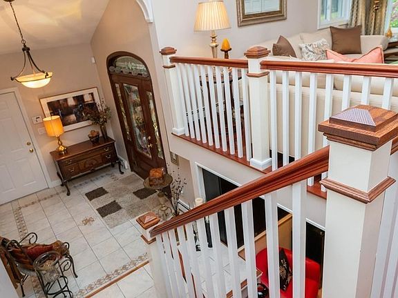 Dazzling Contemporary home nestled on a cul de sac! Extraordinary attention to detail throughout includes gorgeous cherry wood cabinets, work island/breakfast counter with granite including backsplash, Bosch SS appliances, numerous built ins, glass front china cabinet, skylight, and open concept. Living/dining room/kitchen with cathedral ceilings, gas fireplace, detailed wood work in family room and upper level, solid wood doors, wired for surround sound, & ample storage. Three good size bedrooms including large Master with double closets. Lower level offers fantastic in law potential or an at home business opportunity with separate entrance, oversized family room with mini kitchen including sub-zero fridge and another gas fireplace. Outside features include a beautiful waterfall, perennial gardens in the front of the home, custom stone & pavers hardscape throughout, professionally landscaped, underground sprinklers, oversize Trex deck, and natural hemlock backyard "fence"(12ft high)