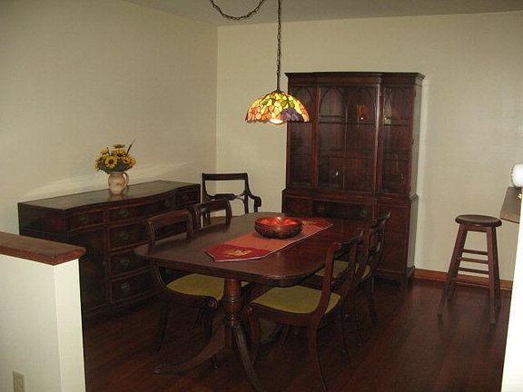 Just sit down and enjoy. Move in ready! Owners have painted and cleaned throughout Lovely hardwood floors in each room except kitchen. Kitchen has refaced cupboards and updated counters and floors. Living room has gas fireplace and nice light. Formal dining room between living room and kitchen. Four great bedrooms. Huge unfinished basement with loads of potential. Large very private back yard. Quiet cul de sac. Lovely location.