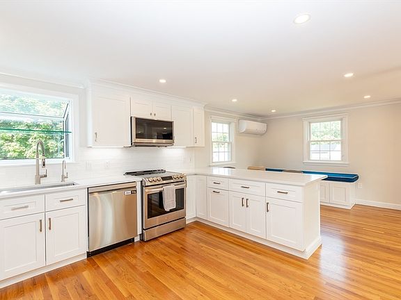 Discover the ultimate move-in ready impeccable home with nothing to do but unpack! Completely renovated open concept first floor features updated kitchen, dining room & living room with stunning hardwood floors. An updated bath and additional versatile room off kitchen with slider to spacious deck perfect for entertaining or just relax as the irrigation system waters your lawn. 2nd floor has beautiful hardwood in all 3 bedrooms hall & stairs and an updated full bath. Just freshly painted interior, this gem of a home has been upgraded since 2018 to include new roof, boiler, oil tank, hot water heater, reverse osmosis system for drinking water from sink and fridge, 200 amp electrical system, energy-efficient Nest system and all-in-one heating and cooling mini splits. Storage shed with electricity/lights. Located on a dead end street with close proximity to major highways, public transportation, commuter trains, Logan Express, Woburn Village and all that Woburn has to offer