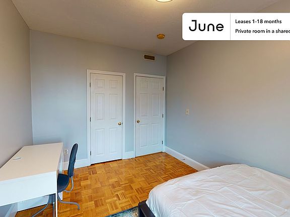 This Queen room in Allston is available on a 12 month lease or a flexible short term (31 to 364 days) lease. You pick your custom start and end date. Monthly rent rate is determined by furnishing preference, move-in date and move-out date. Speak to a June representative for recommendations on the best stay duration for the lowest rate.