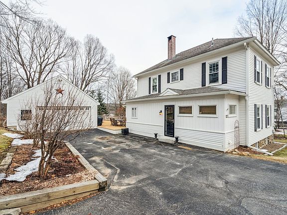 Just a short stroll from Main Street and the Meredith Town Docks, discover this delightful 3-bed, 2-bath colonial that has been thoughtfully updated. Step inside to find a welcoming half bath with laundry and a spacious kitchen, flowing seamlessly into the bright and sunny living room. The first floor extends to a charming dining room with built-in cabinetry, leading to the family room overlooking the backyard. Slide open the large doors to the expansive deck, perfect for outdoor dining and gatherings. Upstairs, brand-new carpeting sets the stage for a spacious Primary bedroom and two additional bedrooms, all accompanied by a full bath. The oversized 2-car detached garage with a workbench provides extra storage, and the yard is adorned with lovely Summertime gardens and a basketball court. Enjoy the convenience of public water and sewer, while the proximity to local shops and amenities makes this property an ideal choice for both primary and second homeowners. Come and make yourself at home in this inviting colonial residence on one of Meredith's most charming streets!