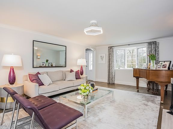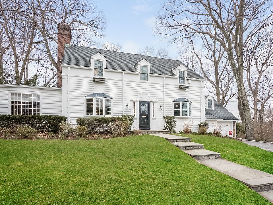 This spectacular classic Colonial, is updated w/modern touches to create an open flowing layout, & the perfect space for entertaining family & friends. Enter the center hall foyer w/views to the garden & golf course. The first level features a formal LR w/new stone mantel fireplace & built-in bookshelves, spacious home office/den, formal DR, PR, mudroom, light filled & generously sized kitchen/family room & dining area, & a few steps up to lovely bedroom w/full bath. Newly refinished hardwood floors throughout. The second story boasts a luxurious master suite, 2 walk-in closets & master bath, 2 more bedrooms w/hall bath, laundry, playroom/office (potentially 5th bedroom), & newly installed Anderson windows. Lower level offers add. 570 sq. ft. with 2 rooms & PR. Garage fitted w/new doors & Tesla charger. Room for a pool (see docs for 2006 approved plans).This cul-de-sac is conveniently located close to Metro North, village shops, and Edgemont Middle/High School. An Edgemont must see!