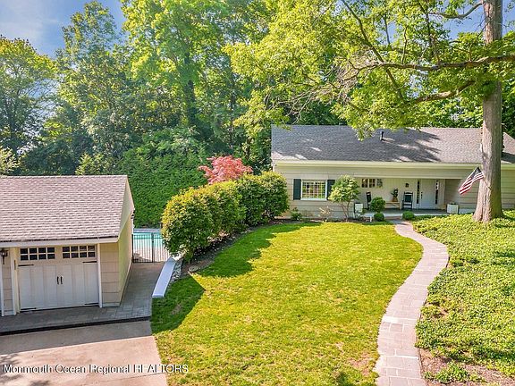 This exquisite home offers the perfect combination of elegance, comfort, & serenity. Lush greenery & beautiful landscaping surround the entire property. Inside, stunning hardwood floors flow seamlessly throughout. The spacious living room features a wood-burning fireplace, perfect for cozy gatherings. The layout connects the living room, kitchen, & dining room, creating a delightful space for meals with loved ones. Meticulously maintained backyard boasts an inground pool, providing a private & serene retreat for relaxation & entertaining. Close to downtown Red Bank, beaches, schools, shopping, parks, & recreational activities allow for a well-rounded lifestyle. Commuting to NYC is easy via ferry, train or bus. This stunning home is ready for its new owner to begin creating lasting memories