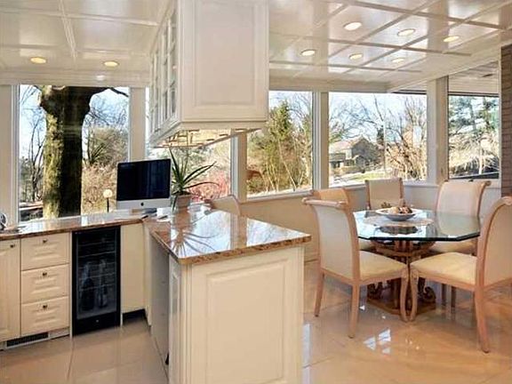 A contemporary architectural masterpiece! Luxurious 28' dream kitchen with two islands, marble floor & countertops, top-of-the-line appliances,all surrounded by glass. Bi-level living room features vaulted ceiling, hand-crafted built-ins, gas fireplace, newly-installed hardwood floors. Master bedroom with fireplace adjoins sumptuous "his" bath/dressing room of mahogany & marble & "hers" bath/dressing room of hand-painted cabinetry & marble, complete with whirlpool tub. Two-three additional ensuite bedrooms make for a flexible floor plan. A wall of windows marries the interior with a lovely fenced backyard and outdoor living patio space Originally designed by architect Louis Astorino for his own residence, this study in glass & mahogany boasts sundrenched interior spaces, soaring ceilings, suspended staircase, skylights, loft, bridge, all with sweeping views of the beautiful lot.