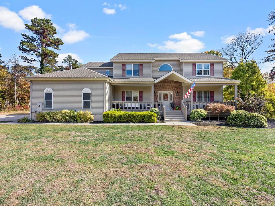 Welcome to beautiful 17 Holly Knoll Drive - next to Union League National Golf Course and minutes from area beaches! Situated on just over one acre, this executive home is inviting and welcoming from the moment you pull up. Long front porch will easily be a spot to relax and enjoy a beverage. Wide foyer features hardwood flooring that spans throughout the main level and is flanked by the living and dining rooms. The open floorplan is perfect for hosting holiday dinners. The gorgeous kitchen offers granite countertops, tile backsplash, island seating, recessed and pendant lighting, crown molding, PLUS a separate bar area with additional sink and beverage fridge. A few steps away is the two-story family room, with gas fireplace surrounded by stonework. Sliders on either side of the fireplace open to an amazing SCREENED IN PORCH! This will easily become one of your favorite spots in the home. Also on the first level is the primary suite with gorgeous, updated bathroom and an attached sitting room that could double as a nursery or office space. Three additional, generously sized bedrooms and second full bathroom are on the second floor. Also on this level is a large loft/living area that could function as a playroom, music room, etc. The home also offers a stunning, private backyard with mature trees surrounding the in-ground pool. Two car garage and garden shed provide for your parking and storage needs. Do not miss out on touring this beauty that you could call HOME today!!