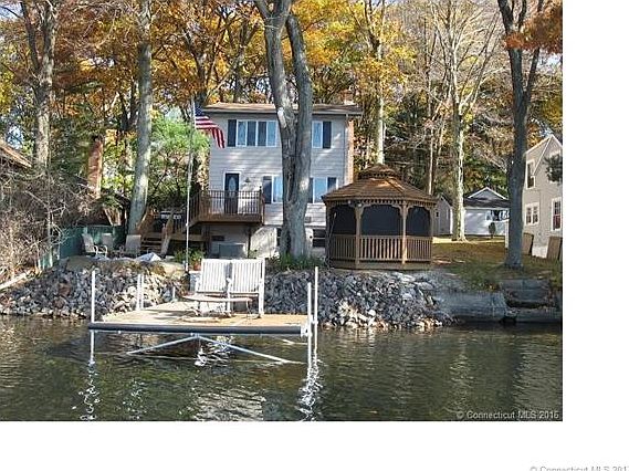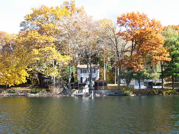 Waterfront home on Crystal Lake that offers great fishing, boating and relaxing. Park your boat at your own private dock, relax on the patio built by Bahler Brothers or in the screened in gazebo. Living room has water views, hardwood floor and a stone fireplace with propane insert. Spacious kitchen with large pantry. Remodeled bathrooms. Upstairs offers good size bedrooms with the master having an office space with water views. The lower walk out level is completely finished for extra living space and also has water views. Newer roof and Marvin windows. Brand new septic system as of March. Attached oversized 1 car garage. Can fit boat and car In.