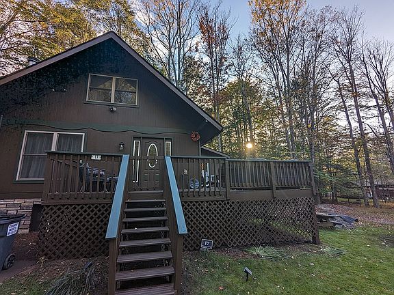 Your turn key Lake Wallenpaupack house awaits! This Indian Rocks chalet has been tastefully updated featuring concrete countertops, stainless steel appliances, hardwood flooring, stone faced fireplace, hot tub and plenty of space outdoors for all of your friends and family. Sale includes adjoining lot for a total of .35 acres. Plenty of fun for everyone with all of the community amenities; pool, fitness center, boat docks, beach, tennis courts, playground, and much more. Golf cart, jetski, 2 kayaks, and furnishings are also being offered for sale. The home is conveniently located just 2 hours from NY, NJ, and Philadelphia. Short term rentals are permitted!