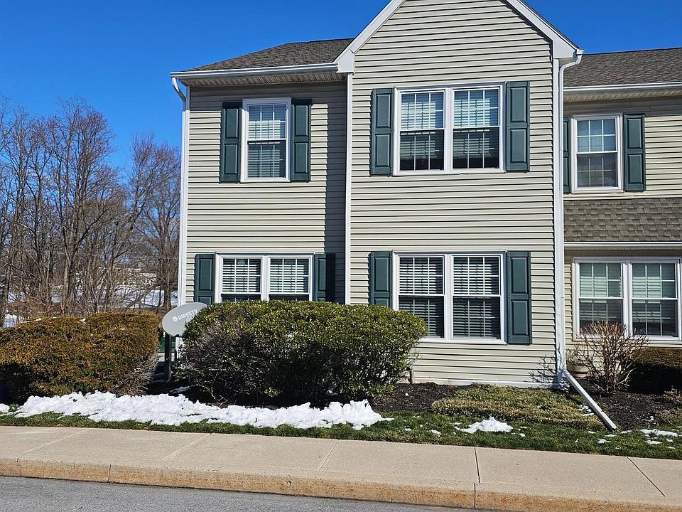 Shhh … don’t tell anyone until you see this one first! It’s the perfect place to start homeownership for the first time or perhaps you’ve had enough of that big house and it’s time to downsize. Here’s a great opportunity in desirable Blacksmith Pointe! Beautiful end-unit townhome features newer neutral carpet and laminate flooring throughout 1st and 2nd levels. Lots of natural light shines throughout the home. The entry features a six-panel steel front door with full sidelight, and outdoor awning. The first floor includes a spacious living room with laminate flooring, and conveniently located coat closet and powder room with vanity sink. The eat-in kitchen has newer stainless appliances, garbage disposal, stainless sink, dishwasher, a full pantry, and beautifully maintained timeless oak wood cabinets. There are sliding doors that access the spacious 14x12 wooden deck where you can enjoy the deer that occasionally visit in the lightly-wooded, park-like backyard. The stairs to the second level are open and features newer carpet and a solid wooden railing. Upstairs are two spacious bedrooms, along with a full bath, linen closet, and laundry enclosure. The primary bedroom has a gas fireplace, a nice walk-in closet, and a ceiling fan with light. The 2nd bedroom is roomy and also has a good-sized closet. The bathroom has a shower-over-tub, full vanity with mirror, and easy-to-clean vinyl flooring. The fully finished basement has recessed lighting, large double window, and sliders to the rear yard. There is a storage / utility area under the stairs. The water tank was replaced in 2014. The HOA replaced the roof in 2017. The heater was replaced in 2021. Conveniently located just off Rte 662 and close to Rte 422 near shopping, schools, and parks, this home will not last long!