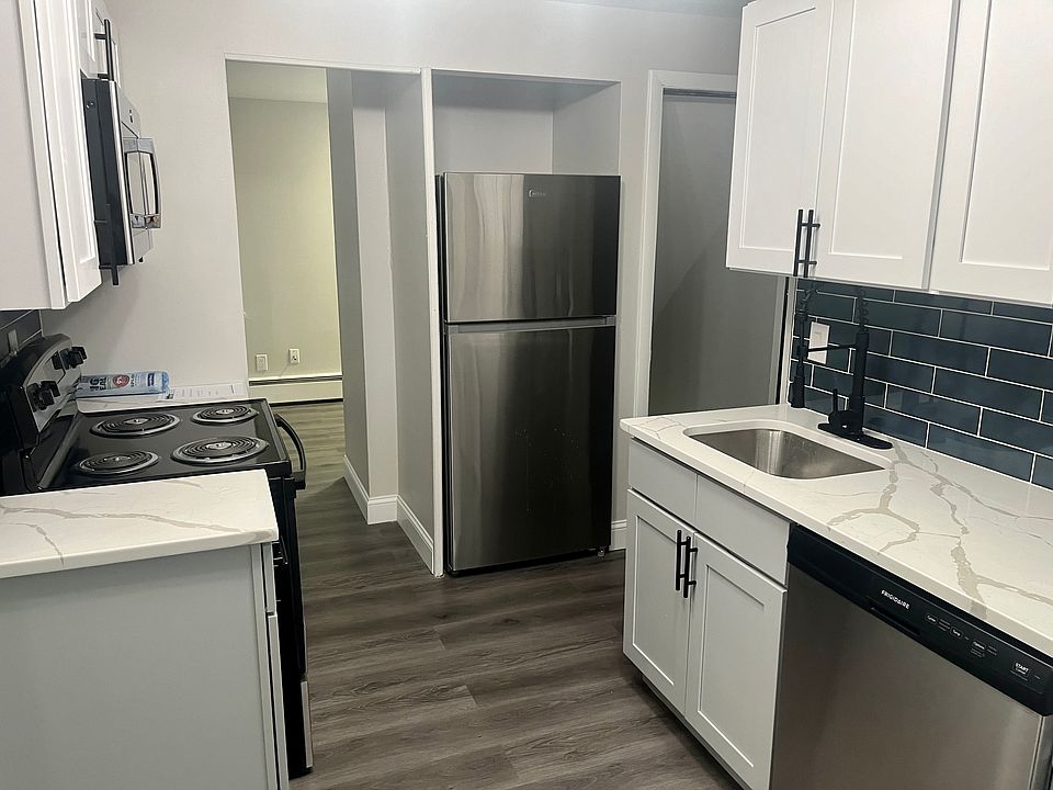 EVERYTHING HERE IS NEW. Excellent East Hartford location near the Manchester line. Amazing 2 Bed, 1.5 bathroom TOWNHOUSE, Remodeled from top to bottom, includes free heat and hot water, 1 full and 1/2 bath, WASHER AND DRYER IN UNIT, basement storage and a private deck to enjoy cool summer days. Features: *In unit Laundry - Washer/Dryer *3 Levels - Basement, 1st floor and second floor *FREE heat and hot water *1 & 1/2 bathrooms, half bath on the first floor - very convenient *Outdoor deck *Off street assigned parking 12 Months