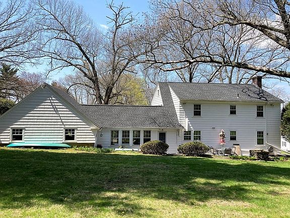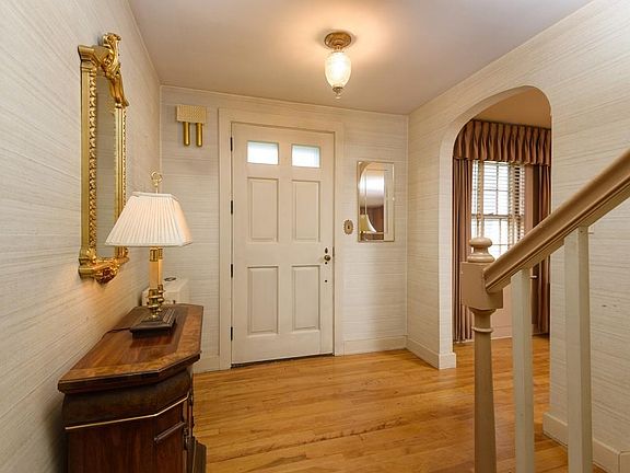 Built by Frank Howe in 1939, this stately Colonial has an impressive curb appeal. It is solidly sited on the rise of a gentle slope, with mature landscaping and a classic facade.The living room spans the left side of the home with a fireplace surrounded by custom built shelving and a long mantel. A spacious dining room has plenty of wall space and can seat a table of six generously. The kitchen is equipped with original steel cabinets and stainless steel counter tops. Hardwood floors, protected for years by carpeting, now glow with rich luster in most of the home. The breezeway connects the house to the garage with plenty of room for storage, closets, and multiple windows, and opens to a flagstone patio in the back. A wide staircase leads to a huge master bedroom with ample closets, a second roomy bedroom, and a third smaller bedroom. The finished basement has cedar closets, laundry area and bar. There is a large loft area above the garage for storage. Some cosmetic updates needed.