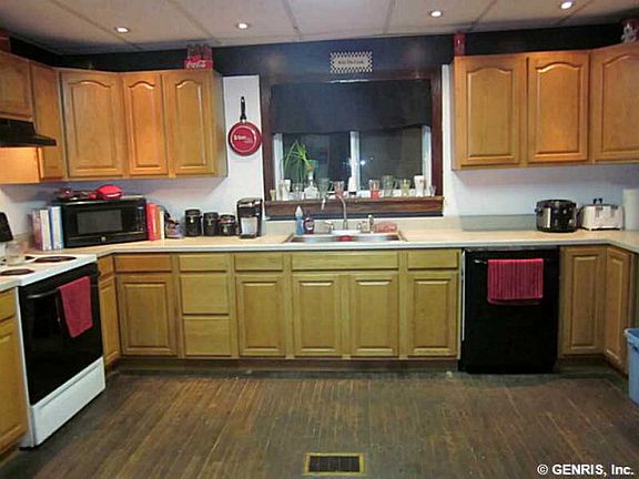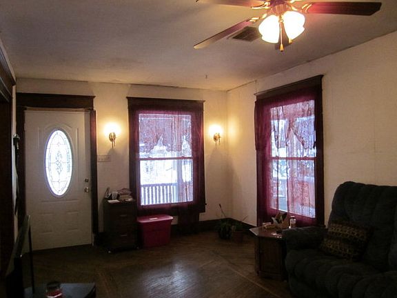 Two-story home in Town. Some of the updates include: spacious eat-in kitchen, many new windows, septic (2010). Possible 5th bedroom on the first floor. Hardwood floors throughout the house, beautiful natural woodwork, high ceilings & large windows. Front covered front porch, side porch, full basement & carriage house. Updated electric service. More work to be done but everything is in working order and is currently occupied.