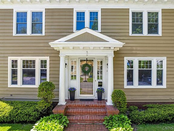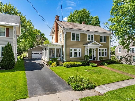 A beautiful New Hartford village colonial with 4 bedrooms, ( 4th bdrm presently being use as office) 2 1/12 baths, the formal living room with wood fireplace and a dining room that adds an elegant touch, the sunroom with it's natural light creates a cozy atmosphere, hardwood flooring throughout exudes warmth and a classic appeal. A partially finished basement with full bathroom, a walk-up attic, and walk-out basement, along with a fenced in large backyard is perfect for enjoying comfortable outdoor activities, above ground pool, a detached 2 car garage, coal stove in basement, dead-end road/cul de sac and walking distant to shopping and village activities