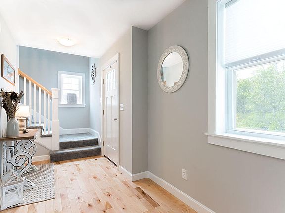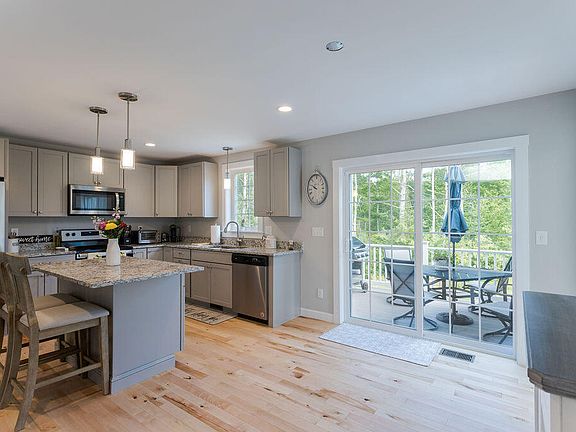 Fresh and airy 2020 Chinburg construction in quiet cul-de-sac that abuts conservation land in Kittery! From the serene coastal palettes to the light filled rooms, this home offers everything modern homeowners desire. Highlights include peaceful seacoast living, inviting indoor and outdoor spaces, tall windows & ceiling, first level hardwood flooring, woodland views from every window, and three levels of flexible and thoughtful floor plan design. First level features an open plan eat-in kitchen that opens to deck with nice grey palette, granite countertops, island, and stainless steel appliances, breakfast nook/dining area, hearth centered living room, stylish foyer area, 1/2 bath and airy ''bonus'' room that is currently being used a gorgeous dining room area, but could be a great 4 season sunroom, remote office space or family room. Second level has private primary bedroom suite with walk in closet and double granite vanity bath plus two bedrooms and laundry. Ground level has super tidy two car garage with custom epoxy flooring, walk out daylight utility room that has potential to be finished for extra living space/fitness room etc, and handy mudroom area. Enjoy quiet mornings on the expansive farmer's porch or outdoor dining and BBQing on the private back deck. Level grassy and sunny yards on all sides plus low maintenance flowering blooms and attractive walkways to front entrance. Best of both worlds with country living with yet still easy access to beaches, gourmet alley, Kittery Foreside, downtown Portsmouth, York and mountain trails. Start enjoying years of hassle free seacoast living in desirable Kittery today!