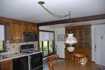 Move right in to this clean and well-maintained home. Potential for in-law arrangement with additional finished 600 sq ft in lower level. Large newer kitchen with dining area, hard wood and tiled floors, newer bath, roof and windows throughout, whirlpool tub, 2-zone gas heating, garage with pull-down loft for storage, stone fence and driveway, patio with gorgeous yard.