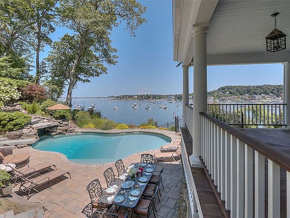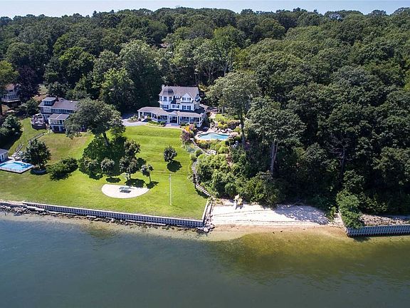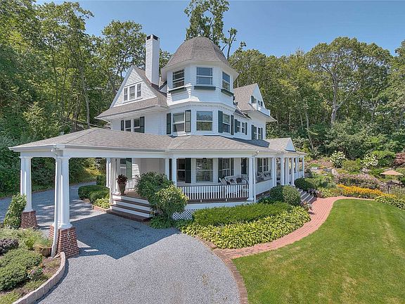 This incredible 268' waterfront residence majestically set on 1.8 landscaped acres! This Centerport Grande Dame is an outstanding example of American Queen Anne architecture with wrap around porch & Porte cochere offering breathtaking views of Northport Harbor. Enjoy the home's beautifully updated features throughout. Chef's eat in kitchen with radiant heated floors, ensuite master bedroom, wine cellar & 3 fireplaces. Exquisite salt water IG pool with magnificent hardscape with waterfall, built-in barbecue, fire pit, basketball court & direct access to sandy beach & deep-water mooring.