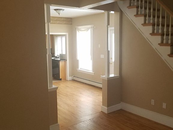 One bedroom Townhouse. Mint condition! 1000 sqft of living space with 1.5 baths. Fully applianced kitchen and first floor laundry with washer and dryer included. Dining room and living room feature gleaming hardwoods. Kitchen and baths are tiled. Nice architectural details. Second floor is the master suite with large bedroom, walk in closet/exercise room or office with spacious master bath. Tons of storage in walk up attic! High efficiency gas heating system. Off street parking. Good credit and income a must. Please provide monthly income, credit score, and at least two references prior to showing. Non smokers, no pets. This unit is a must see!! Owner pays for water/sewer tenant responsible for gas and electriciity