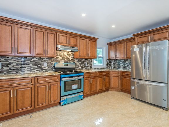 Move right in! This brick Cape Cod welcomes you home! The main level features a large living room with a FP, a spacious RENOVATED Eat-In Kitchen with new stainless steel appliances and granite counters. Also on this level are two bedrooms and a full bathroom! Upstairs has 2 additional bedrooms W/LOTS OF STORAGE and a full bathroom. Beautifully stained oak HARDWOOD floors throughout!The full size basement is totally finished with tile floors, a laundry room and a family room.The newly paved driveway leads to a detached 1-car garage which is surrounded by a large backyard.All windows have been replaced! Close to NYC trans, shp, restaurants, house of worship, school.
