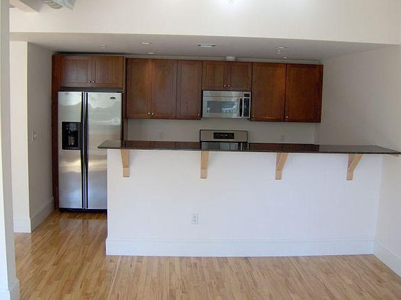 Three bed / one bath, balcony, Central A/C/heat, two zones, d/d, hwf, w/d in unit, granite countertops. Rent includes two garage parking spaces (#19 & #20)