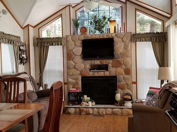An immaculate 2008 Heritage Park Home. The home has an electric fireplace, full-size refrigerator and stove. One bedroom downstairs and a double loft for 2 more bedrooms. A three car converted driveway, storage shed, concrete patio, fire ring and a gazebo. Includes paid 2018 condo dues and 6 passes for all amenities.