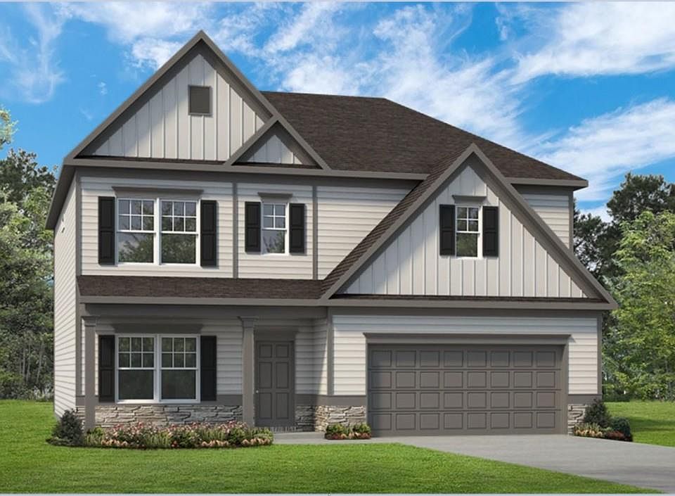 Move in Ready January 2023! The Ellijay plan in the Jackson Farm community built by Smith Douglas Homes. This two-story floorplan welcomes you with wide foyer and grand dining room to accommodate get-togethers, while the adjacent kitchen with a large peninsula overlooks the breakfast area and family room. The kitchen has upgraded white cabinets, walk-in pantry, gas cooking/stainless appliances and granite counters with tile backsplash. A study for in home office completes the first floor. Upgraded vinyl plank flooring throughout the first floor. Second story with four large bedrooms, each with a walk-in closet, three full baths and a large laundry room. Both floors have nine ft ceilings. Photos are virtually staged are representative of plan not of actual home being built. Smith Douglas Homes is the #1 private builder in the Atlanta area. Seller to pay $7000 in closing costs with use of preferred lender and accepted contract by 10/30/2022.