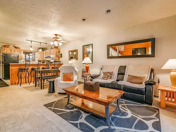 Located within Angel Fire Resort, this townhome-style condominium offers a rare ground-floor private entrance and is situated approximately 260 yards (about a 5-minute walk) from the ski lift, making it ideal for year-round mountain enjoyment. The main level features a full-size kitchen, dining area, living room with a wood-burning fireplace, vaulted ceilings, abundant natural light, and a convenient half bath. The upper level includes two en-suite bedrooms, each with a full bath, creating a functional and private layout. Outdoor living spaces include a balcony off the primary bedroom, along with front and rear covered porches, providing multiple options to enjoy the mountain setting. Additional features include in-unit laundry, ample parking, and a well-designed floor plan that separates living and sleeping areas. Angel Fire Resort offers affordable winter skiing, championship-rated golf, and world-class downhill mountain biking in the summer. With summer temperatures averaging 76 degrees, this property delivers an appealing combination of comfort, recreation, and mountain lifestyle in all seasons.