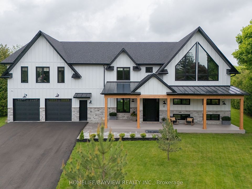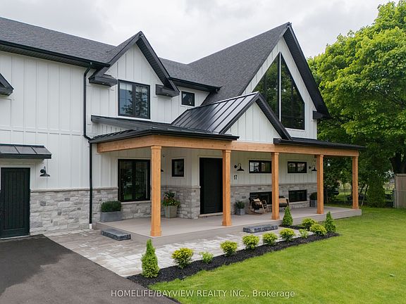 Welcome to 17 Jasmine Crescent-a stunning storybook-style home that masterfully blends vintage farmhouse charm w/contemporary elegance & modern functionality. Nestled on a breathtaking 3/4 acre lot in the prestigious Ballantrae-Stouffville area, this property offers a peaceful retreat in a quiet, tree-lined crescent within a quaint & friendly neighbourhood. Enjoy the perfect balance of serenity & accessibility, just a 10-minute drive to HWY 404 & Stouffville, making it an ideal location for those seeking an escape from the city without sacrificing convenience. Step inside to a grand entrance that flows into a gourmet kitchen, featuring a massive island, quartz countertops, custom stone backsplash, high-end appliances, and a W/I pantry. The kitchen opens to a spacious dining area & leads seamlessly into an all-season terrace, a perfect space for entertaining or relaxing while overlooking the expansive backyard. The spectacular great room showcases a soaring two-storey cathedral ceiling with wood beams, a striking floor-to-ceiling stone fireplace, and a spacious loft accessible by a custom metal spiral staircase. Large windows bathe the space in natural light, enhancing its warm and inviting atmosphere. The primary suite is a true sanctuary, complete with cathedral ceilings, wood beams, radiant heated floors, a custom walk-in closet, a cozy gas fireplace and direct access to a sprawling balcony with serene backyard views. The luxurious ensuite features a soaker tub & rainfall shower. Car enthusiasts will appreciate the massive 4 car garage, featuring yard access, stairs to basement, a separate electrical panel, built-in Chameleon central vacuum for vehicles, & a rough-in for a boiler heater. As one of the largest lots in the neighbourhood, the backyard offers endless possibilities to create your own private oasis. This exceptional home offers a rare combination of character, luxury, and space perfect for families, entertainers and anyone seeking a peaceful lifestyle.