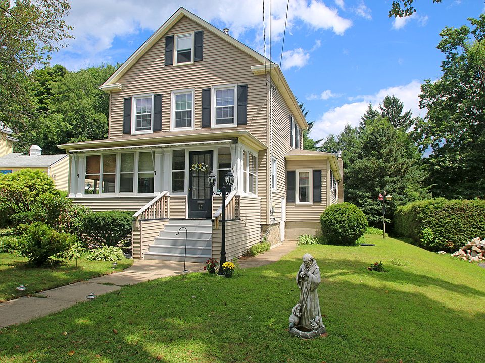 Exceptional and impeccable! Beautiful Colonial located in desirable area just minutes to Tarrywile Park & Mansion. Pride of ownership seen throughout. Extensive moldings and finishes, wide plank flooring (main lvl), hwd floors 2nd floor. Central air, gas heat, and city sewer and water. Spacious eat in kitchen w/modern conveniences. Formal living room and dining room. Sun filled family room w/vaulted ceiling and gas stove. Updated baths. MBR w/wiclst. Oversized 3rd floor bedroom with skylights & brand new carpeting. Fabulous enclosed 3 season front porch with awning. Awesome level rear yard w/plenty of room for entertaining. Lovely patio and landscaping. 2 car garage and huge shed. Newer windows. A pleasure to view.