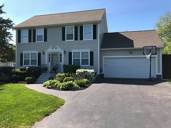 BRAND NEW 768 sq ft FINISHED BASEMENT w/TILED FLOOR and NEW BATHROOM (never used). BEAUTIFUL LANDSCAPED COLONIAL sits on a CUL-DE-SAC w a total of 2304 sq ft! 2019 APPLIANCES and COUNTERTOP in this BRIGHT kitchen ATTACHED to the 2 CAR GARAGE. 1/2 bathroom in hall. FORMAL DINING AREA, NEW TILED FOYER & BATHROOMS. HUGE living room / SLIDER to LARGE DECK. HARDWOOD STAIRS lead to a LARGE MASTER BEDROOM w/ WALKIN CLOSET. A FULL BATHROOM in the middle and 2 more BEDROOMS UPSTAIRS. CITY WATER & SEWER, FRESHLY SEALED PAVED driveway, SIDEWALK around the cul-de-sac. CLOSE to RI LINE and 395.