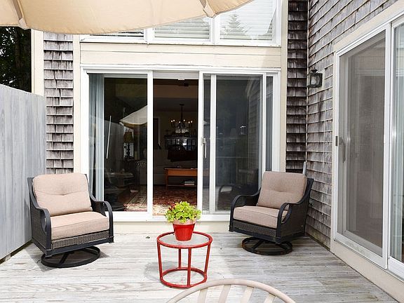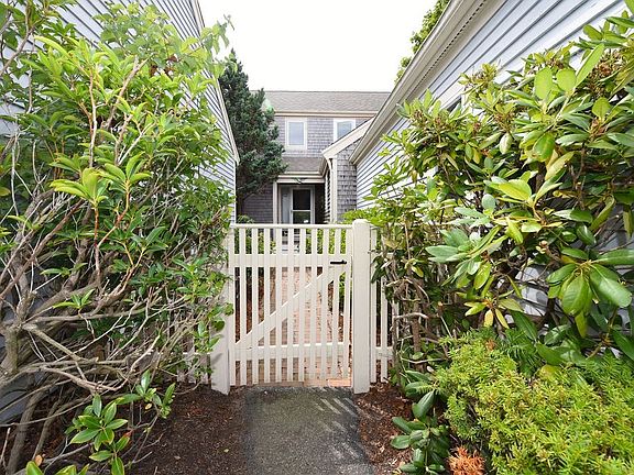 Stunning "H-style Townhouse located in Yarmouth Port desirable community of Kings Way! Just step inside this beautiful light and bright Townhouse with cathedral ceilings, hardwood floors, fireplace living room that has an open floor plan to dining area and kitchen. Sliders in the living room to great private large deck. First floor Master suite with large bathroom with hardwood floors and sliders to deck. Kitchen is open with breakfast bar newer appliances, also sliders to lovely patio. Upstairs has the 2nd bedroom and bonus room. All appliances stay. New heater, water heater and AC Unit. Wonderful garden areas! Vacation All year round! Full basement if you want to expand. A True Pleasure!