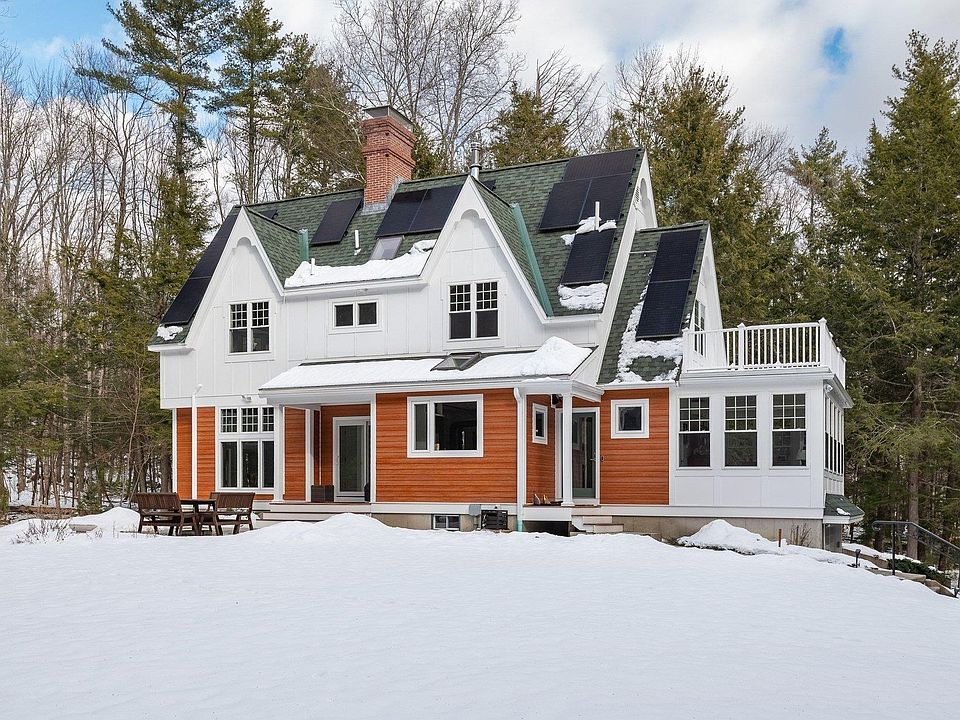 Designed by Boston architect Jeremiah Eck and nestled on almost 5 acres, this beautiful home features a thoughtful design with the latest systems and updates. Hardi-Plank siding and PVC trim make its exterior maintenance free. Entering through the custom-tiled foyer, you are immediately greeted by the abundant light that fills the house. The spacious and bright kitchen features high ceilings, gleaming hardwood floors, a large peninsula, a pantry closet, and Miele professional appliances. It opens to the dining area with its custom window seat and Hearthstone stove. The exposed-beamed great room with its striking windows on 3 sides brings the beauty of the outdoors in, and features a Rumford gas fireplace with its custom door. Pella Sliders give access to the porch and patio. The all-season sunroom offers panoramic forest views for the perfect reading and entertainment center. The 1st floor also holds a half bath and custom-tiled laundry room with sink. Upstairs you’ll find sweeping gables that add spacious beauty throughout. The primary suite has 2 walk-in closets and the bath offers a striking walk-in dual shower. The 2 additional bedrooms are connected by a Jack-and-Jill bath with pedestal tub and shower. Further equipped with solar panels, central AC, & a standby generator. Adding significant value is the 600 sq ft studio with HVAC mini-splits offering potential for office space, an ADU or whatever your heart desires - all less than 3 miles of downtown Exeter