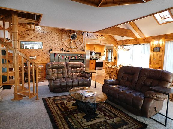 181.5 ft of FLAT WATERFRONT on beautiful Piper Pond! This is a double lot of 1.52 acres with lots of grassy open area, 2 docks, a rare waters edge remodeled deck and a great area for swimming or launching a kayak. Waterfront like this is difficult to find. This year round furnished house has great rental history if you are looking for an investment property or love it full-time as your family home. 3 bedrooms 3 full bathrooms, 3 season glassed in porch, and one large game room with a new hot tub. The house has a newer backup 20kw Cummins generator. With the oversized 1400 sq ft garage (+storage above) you will have plenty of room for your vehicles and toys. Speaking of toys, you have direct snowmobile access from this property. There is overflow parking but does have a beautifully paved shared driveway. This house has so many excellent features on an absolutely gorgeous 420 acre ''pond''. Make memories boating, jet skiing, kayaking or watching the sunset while listening to loons. Don't miss out on this cutie.