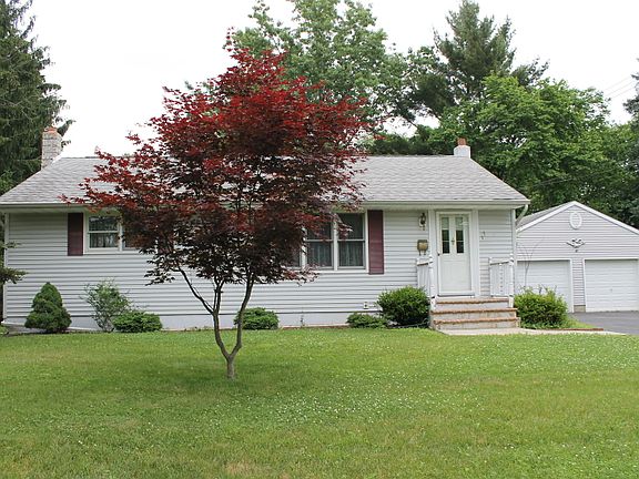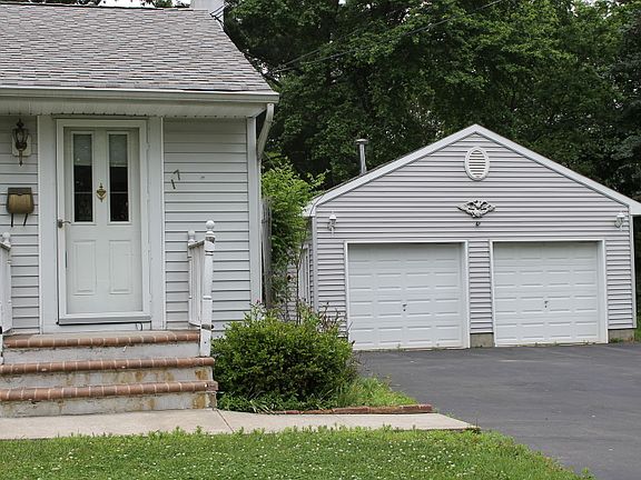 Oversized 2 car detached garage w loft storage/pull down stairs Move right in! Charming ranch on quiet street in friendly neighborhood! Private backyard .Great view of woods from from your deck! Bright natural light in kitchen from skylight, separate dining room with tile floor. Hardwood floors . Unfinished basement has walkout to the backyard . Ductwork in place for Central A/C Gas lines in street/can convert from oil. Just minutes from Horseshoe Lake recreation complex, schools, and shopping. Home Warranty