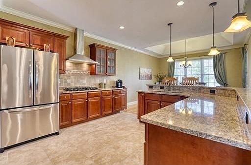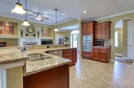 - Kit Dscrp: Main Level, Countertops - Stone/Granite/Solid, Flooring - Stone/Ceramic Tile, Kitchen Island, Crown Molding