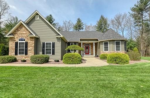 JUST LIKE NEW!! Featuring gorgeous curb appeal, 3 bedrooms, 2 full baths, and custom finishes this Ranch style home is sure to impress! Gather friends and family in the open concept living/kitchen/dining room for easy entertaining. Kitchen features Cherry wood cabinets, granite counters, gas stove top, pantry & breakfast bar that seats 5! Dining room w/ beautiful tray ceiling & large windows providing tons of natural light. Living room is spacious w/ a raised ceiling, magnificent feature wall w/ gas fireplace & French doors to the 3-season sunroom. Master Suite with w/w carpet & tray ceiling & master bath w/ soaking tub, walk-in shower & separate toilet room. 2 spacious guest bedrooms one with w/w carpet, one w/ hardwood floors & tray ceiling. Shared full bath and main floor laundry w/ utility sink complete the main floor. Basement features additional finished living area w/ separate 200amp electric heater. Custom blinds, 8ft doors, built-in storage, 2-car garage, storage shed & MORE!!