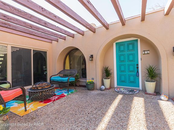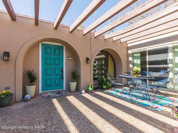 Gorgeous with a Spanish charm. Enjoy the abundance of natural light, spacious rooms, inviting courtyard for entertaining, ample parking and so much more! This property offers 3 bedrooms and 2.5 bathrooms, all on a lot and a half. Located right outside of town, in the nestled neighborhood of Bishop Hills in Bushland School District.