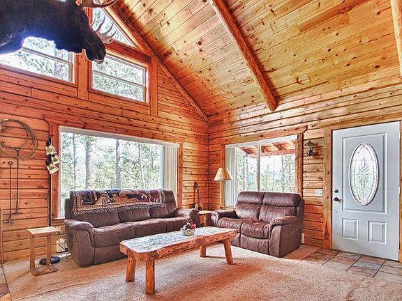 Handcrafted logs-not milled-give this rustic home so much character; every log is different! New carpet being installed throughout! Enjoy morning coffee on the wraparound deck with views from all directions. Immense 30x40 shop has 100 amp & 220v power. Boiler/hydronic system heats shop & home's radiant floor heat. RV hookup w/power & dump station. Keep Fido happy and comfy in the 10x40 concrete dog kennel with water & lights. Live in the midst of nature with all the conveniences. Head for the hills!