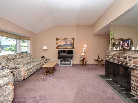 Lovely family home on level property. Featuring new eat-in-kitchen cathedral ceilings living room with fireplace dining ell den/4th bedroom 2 additional bedrooms and master bedroom with bath. Large family room full basement and 2 car garage. Home Warranty.
