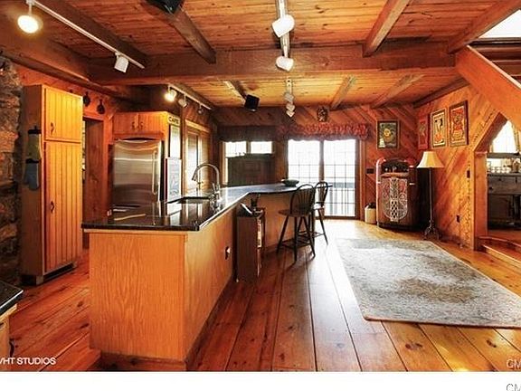 Privacy in The Knolls! Beautiful contemporary home at the end of a cul de sac with a detached 3 car garage and potential studio space above! Lovely lake views! Open kitchen, great for entertaining, Living Room with floor to ceiling stone fireplace, lower level with private room and half bath, master suite occupies the upper level with views of the lake! Decks and stone walls and plenty of parking! All in the wonderful community of Candlewood Knolls, beaches, clubhouse, tennis courts, boat docks, tennis and basketball, fun for all!