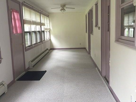 Location, Location, Location. Nestled away on this 3.87 acre lot is this 5 bedroom Cape Style home with 3.5 car garage. 3 Spacious bedrooms with hardwood flooring and natural lighting on the first floor. All Freshly painted bedrooms and living room. Knotty pine kitchen cabinets with double electric wall oven. Off kitchen is a large enclosed porch which leads out to your PRIVATE back yard. Half bath off kitchen. First floor laundry/facility room with access to the enclosed porch is a nice bonus! Living room with hardwood flooring and a fireplace leads to the second floor. The partially finished second floor offers 2 more bedrooms, an unfinished bathroom and large closet. Full basement with bulk head. Sump pump in basement. Nature is your back yard! Running brook on property. Lots of Blueberry bushes and apple trees to enjoy.